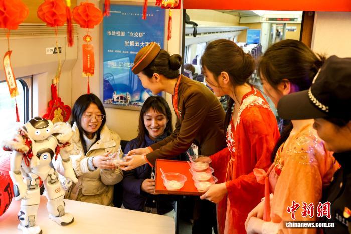 (新春走基层)湖北武汉:动车上的喜乐元宵节