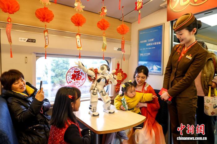 图为列车员战搭客旁观智能呆板人上演。中新社记者 弛畅 摄